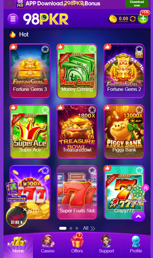 98PKR Game is an online gaming and earning platform where players can enjoy many popular games and win real cash prizes. It is designed for mobile users who love playing casino-style or skill-based games.