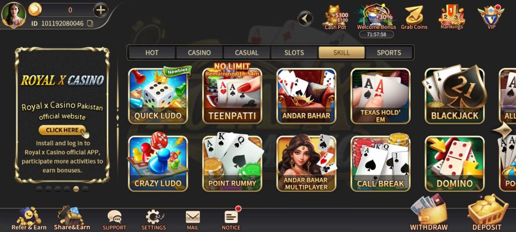Whether you are looking for fun or real earning opportunities, PKR Royal X Casino stands as a reliable and enjoyable choice.